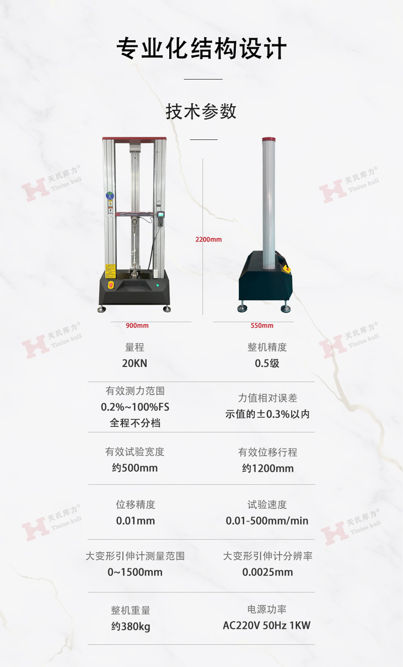 20KN加高萬能試驗機(帶大變形引伸計),雙柱拉力機